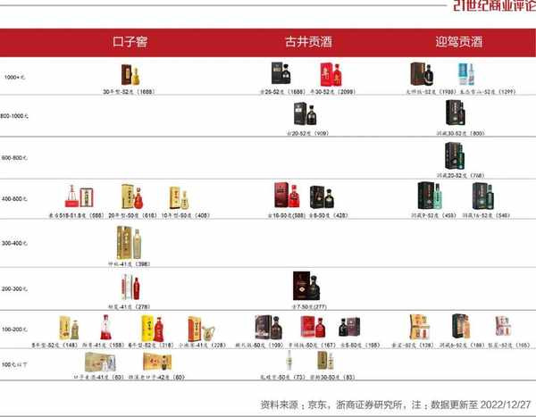 年份原浆,又区分为多个系列,古26、年三十等高端产品,剑指1000元以上价格带,古20卡位800-1000元价格带,古16定位中高端商务和婚宴市场,古8均价400元上下,相对大众。
