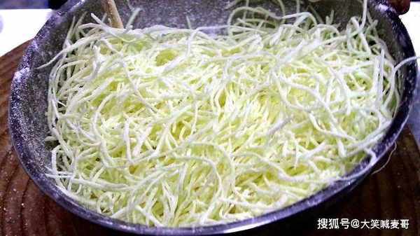 用筷子搅拌均匀,加入50克玉米淀粉,充分搅拌,包裹在每根土豆丝上。