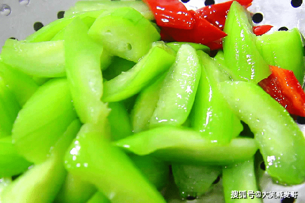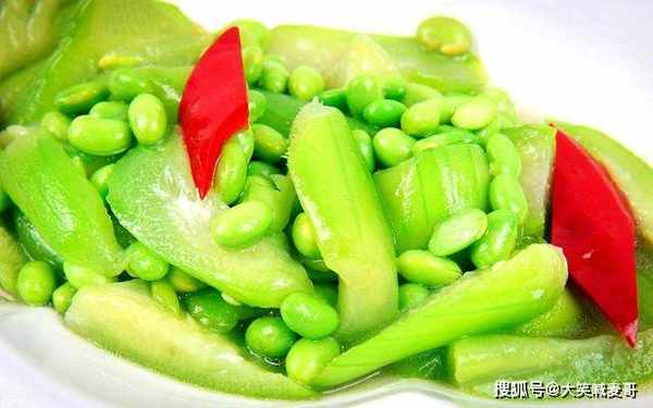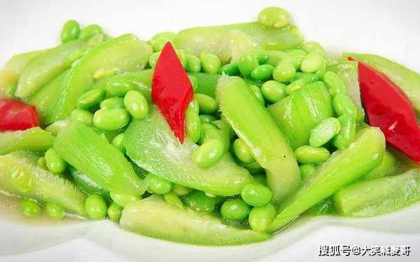 鲜红的红椒和碧绿的丝瓜颜色非常好看。