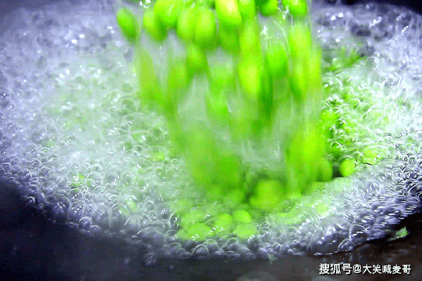 锅内烧水,先放入毛豆,焯水片刻。捞出水面上面的浮物,焯熟后捞出毛豆,用凉水冲一下。凉水冲洗毛豆吃起来口感更嫩还脆。