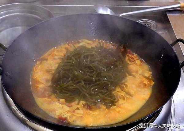 锅内烧油,油热后放入葱白,生姜,等大料。再放入豆瓣酱,快速翻炒,炒出豆瓣酱的红油,加入清水,开大火,把水烧开,加入料酒,生抽。
