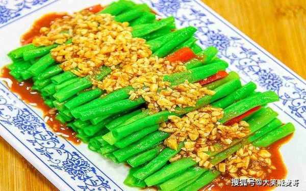 ,大蒜3粒,拍扁后切成蒜末放入盆中,加入食盐2克、味精1克、红油5克、香油5克使菜品油润发亮,生抽5克,用筷子搅拌化开调料。