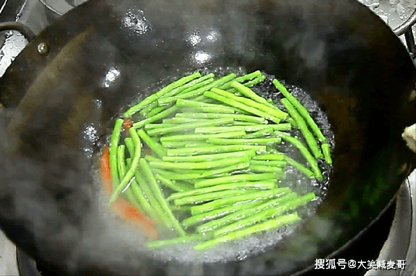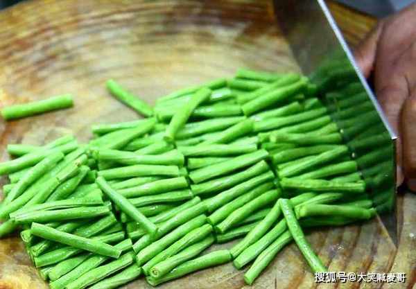 豆角煮熟返青以后倒出来,快速用凉水冲洗一下,以免豆角回软。