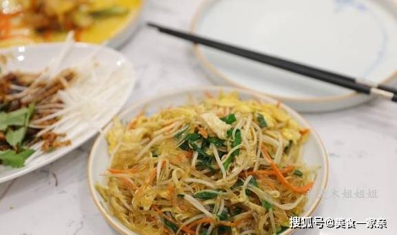 绿豆芽,粉条胡萝卜丝,韭菜丝,鸡蛋简简单单没有一丝肉,可就是人人爱吃。卷饼就饭都是经典,很家常。
