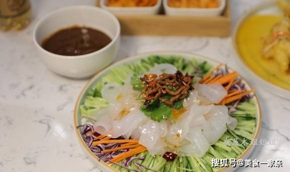 虽然八大菜系里东北菜并没有排上名号,但这并不妨碍大家对它的喜爱。菜量大,色香味浓的家常菜是它的特点,代表菜有很多。这道大拉皮爽滑筋道,咸甜各占一半,重点是酱香十足,吸溜着吃美极了。