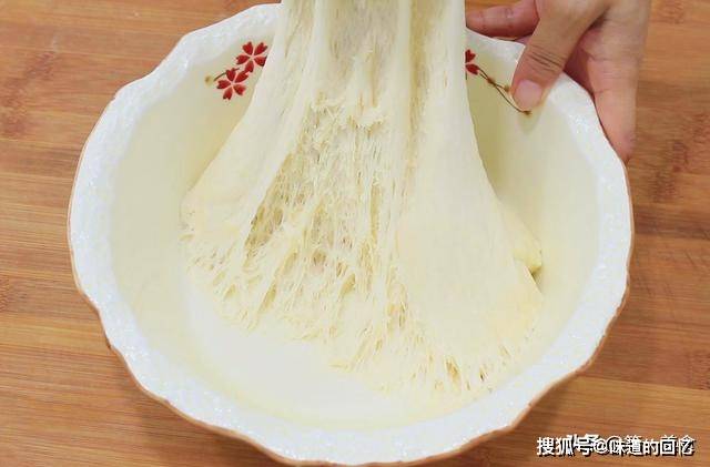 1个小时以后 ,面团膨胀到原来的两倍,用手扒开面团,里面呈蜂窝状,这个时候面团已经发酵好了。