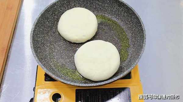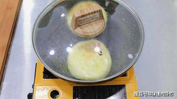 盖上锅盖,慢慢加热,一面煎至金黄后,翻过来煎另一面。