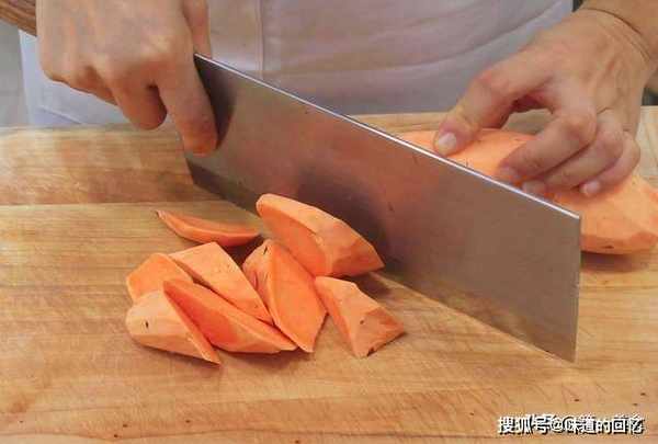 首先准备去皮红薯一个,切成滚刀块 。