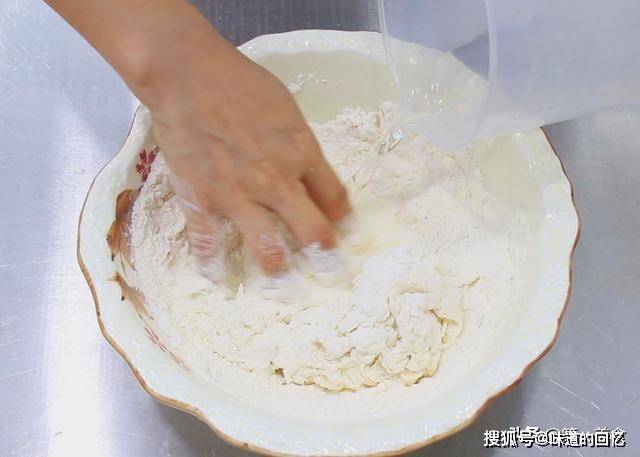 酵母和白糖搅拌均匀, 倒入不超过40度的温水,边倒水边用手搅成面絮。