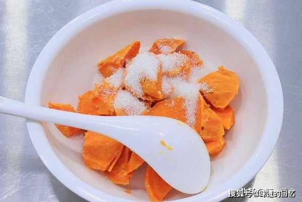(两勺),放入一勺食用油,目的是为了红薯泥不太干。