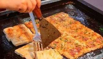 摊主在一块大铁板上挥斥方遒,将一柄烧烤铲舞得虎虎生风,不一会儿白白嫩嫩的豆腐,就变成了香喷喷的铁板豆腐。