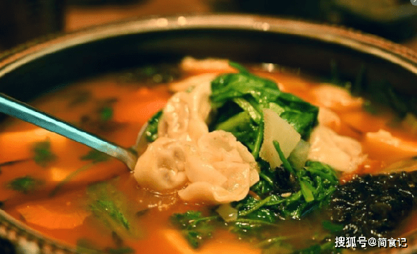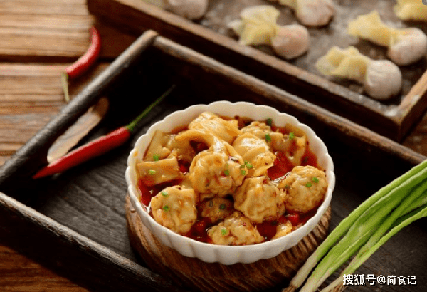2:抄手,馄饨到了川渝地区,摇身一变成了抄手。抄手的历史可以追溯到明朝时期,当时四川成都一带的摊贩常常在路边卖一种类似于馄饨的小吃,后来这种小吃就逐渐演变成了抄手。在川渝地区,一碗好的抄手,必须要有辣椒和花椒的辅佐,舀起一个放在嘴巴里,舌尖上立马产生令人愉悦的“颤动感受”。在这里抄手的皮要比一般的馄饨皮略厚,介于普通馄饨和饺子皮之间,这样厚度的外皮,特别容易挂汁,非常适合香辣味的汤底。在川渝地区,除了传统的麻辣口味之外,还有清汤,干馏,蘸水等做法。