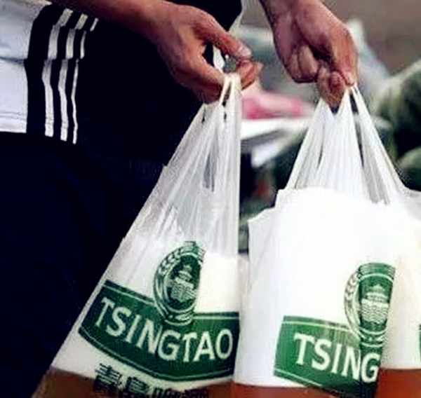 沒錯,塑膠袋裝啤酒絕對是青島特色。用塑膠袋裝啤酒主要是方便:賣酒的和買酒的都方便。
