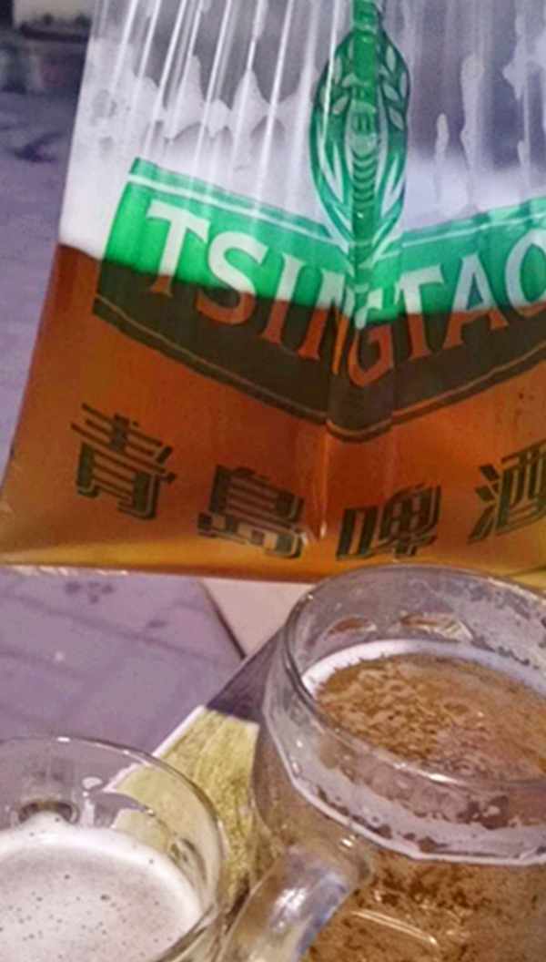 再次重申:塑膠袋裝啤酒,青島特色。塑胶袋喝啤酒,青島人笑了:白彪了,哈哈。