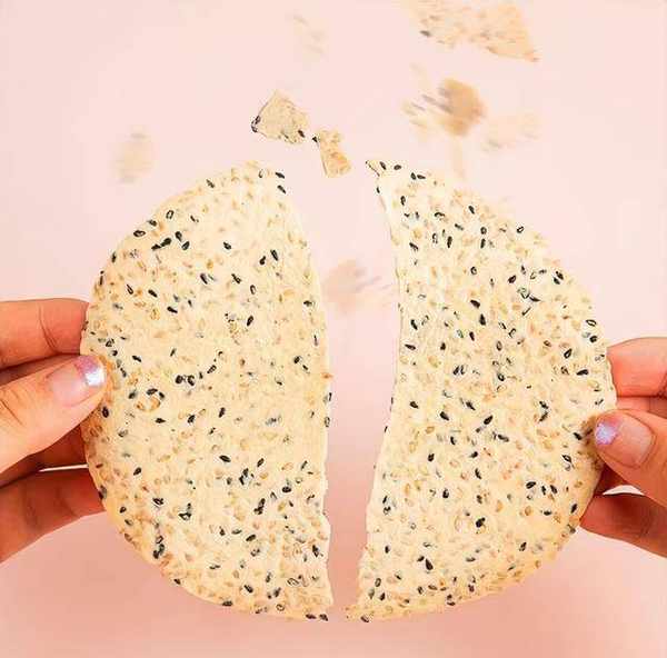 带着一点微咸的口感,好吃不腻,越嚼越香,饼面上铺满了黑白芝麻,增加醇香的口感,很像小时候吃的炕饼味道,但是更脆。