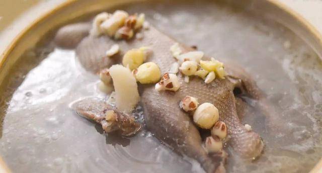 做法:老鸭斩块,汆水捞起;将莲子、茯苓、芡实和山药洗净,清水浸泡半小时。砂锅内放入食材,武火煮20分钟后,转文火煲一个半小时,加点盐调味即可。