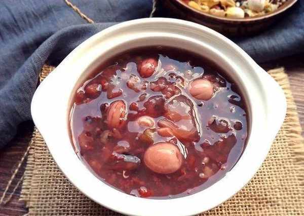 做法:糯米200克,莲子100克,核桃50克,蜜枣50克,葵花子(生)25克,葡萄干50克。莲子淘洗干净,去芯,核桃仁用温水浸泡后,剥去外衣,切碎;蜜枣去核,切成细丁。糯米加水煮成稀粥,再加入其他原料,以白糖调味即可。