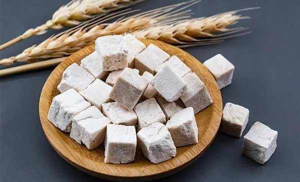 茯苓味甘,性平,归心、肺、脾、肾经,利水渗湿,健脾宁心。而茯苓糕也是从古流传至今的美食。
