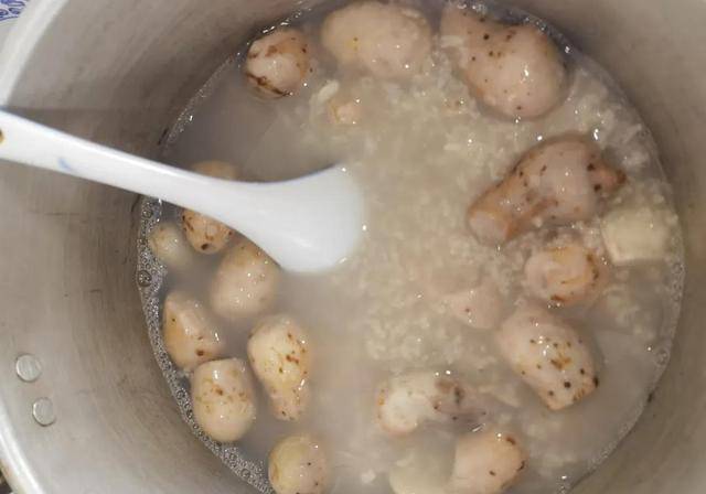 做法:准备去皮,小可从中间切一刀,放入清水中浸泡,去除表面多余的淀粉,糯米清水淘洗两三遍,一起放入锅中炖煮。喜欢吃甜可以在煮熟后加入白糖食用。