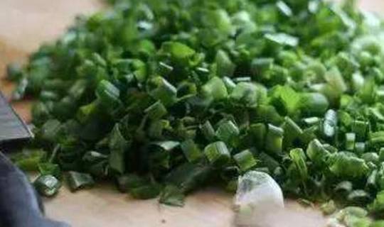 2、准备适量小葱,用清水清洗干净,把葱叶部分剁碎,备用。做葱油饼的时候只用葱叶就可以,放葱白的话可能会有点辣。