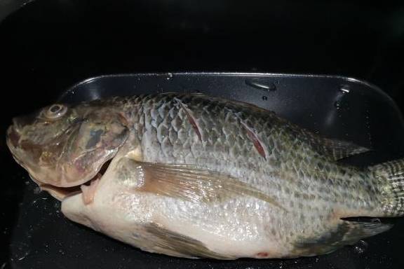 1、将鱼的杀好去除鱼鳞,再用刀将鱼肚切开,去除内脏和肚子里面的黑膜(黑膜是腥味的主要来源,所以一定要去除干净)。在鱼的表面切上刀花方便入味,用水冲洗干净,再加入料酒和盐腌制。