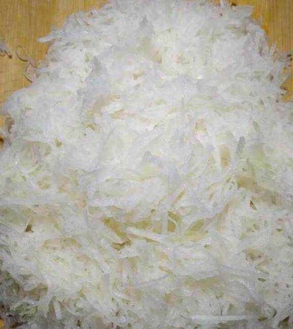 2.用细一点的擦板擦细丝或者切丁都是可以的,太粗了揉不成面团;