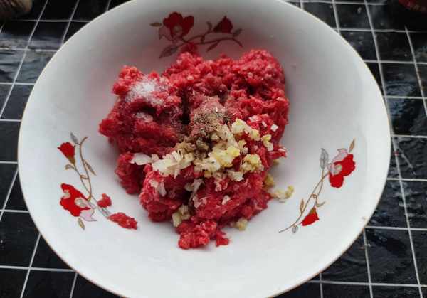 调制馅料时要先施放盐、酱油和胡椒粉等调味料,而且要把肉馅搅打上劲后再分次打水,因为盐分可以使肉中的蛋白质凝固,如果先打水后调味,很容易使馅料出水和不入味。