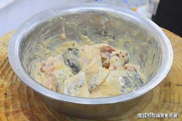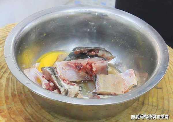 在盆中加入食盐2克,十三香2克,鸡粉2克,料酒3克,然后打入一个鸡蛋,鸡蛋液遇热迅速凝固,能够锁住水分,使鱼肉的口感更加嫩滑,