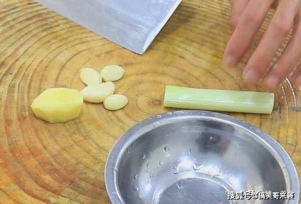 大葱切成葱段,大蒜切成蒜片,生姜切成姜片与葱,蒜一起放在盆里。