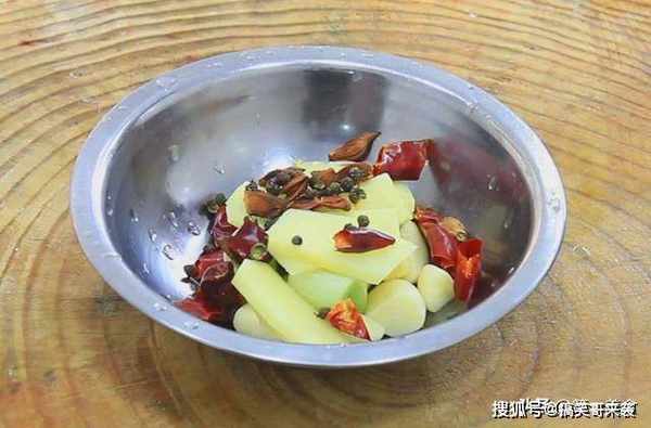 把锅烧热,倒入植物油,倒入葱,姜蒜和准备好的大料一起翻炒