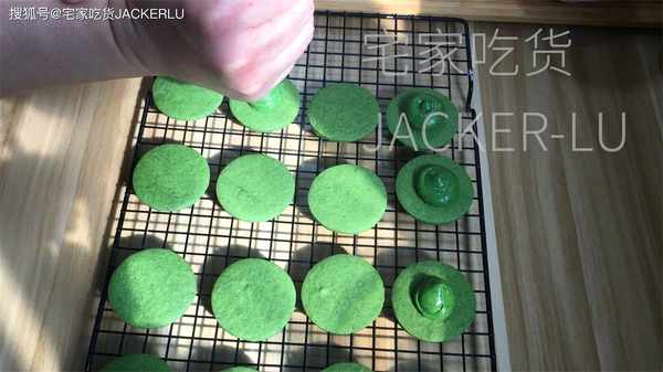 14、把夹心馅料挤在放凉的饼干上,两块饼一夹。