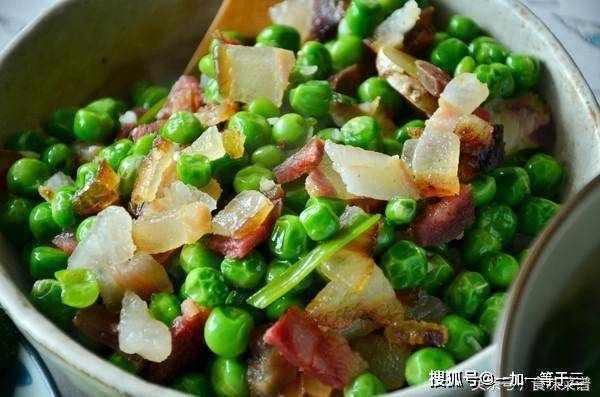 腊肉,青豌豆,生抽,糖,盐,葱,蒜,生粉,料酒,鸡精