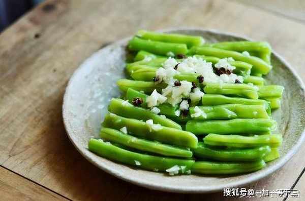 1、四季豆煮熟沥水放凉备用,蒜末切好备用。