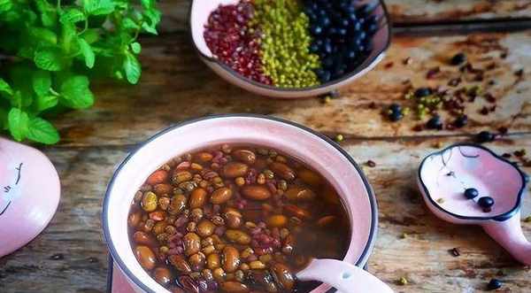 做法:将三种豆类洗净,加水适量,大火煮沸后小火煲至豆子软烂,再加冰糖调味,放温后饮用,可以替代茶饮。