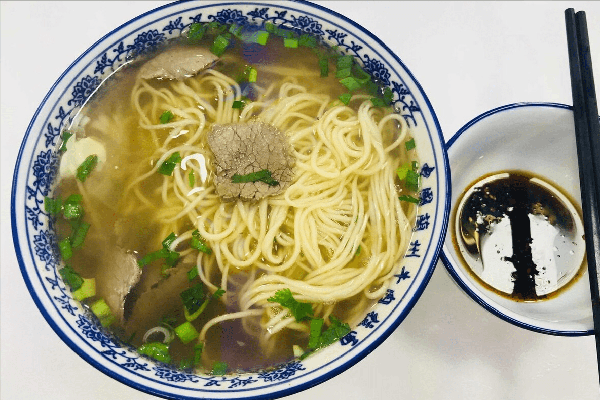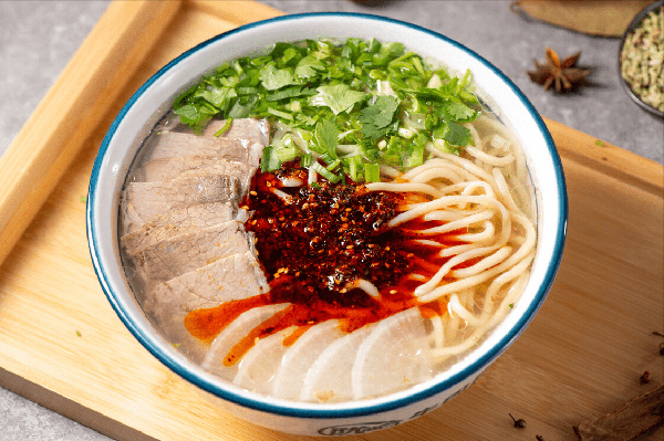 相比较而言,兰州牛肉面做法就复杂很多,它延续“一清、二白、三红、四绿、五黄”五条准则,即汤色清亮,萝卜白净,香菜翠绿,油泼辣子红艳,面条黄亮。而其中的汤,才是兰州牛肉面的灵魂。