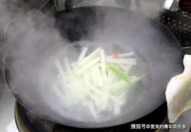 锅内加入适量清水,水烧开以后加入白醋5克,白醋也能防止山药氧化变黑,把浸泡好的山药倒入锅中,开中小火焯水1分钟左右,捞出来用清水冲洗备用。