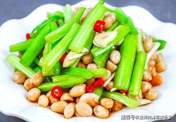10分钟以后把芹菜捞出,挤干水分放入大盆中,倒入花生米,放入蒜片和小米椒,加生抽20克,陈醋15克,白糖20克,葱油20克,香油10克,再加入少许食盐,腌芹菜时已经放过食盐不需要多加,颠盆拌匀后即可,一道下酒必备的芹菜拌花生就好了。