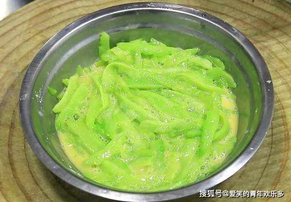 锅内烧水,加入食盐2克,白醋5克,淋入少许植物油,等水烧开后放入锅中焯水,30秒后捞出快速用凉水冲洗,保持苦瓜的脆感,控干水分放入盆中,加入鸡蛋液,再加入5克干淀粉,用筷子搅拌均匀,加入一点干淀粉鸡蛋炒出来口感嫩滑。