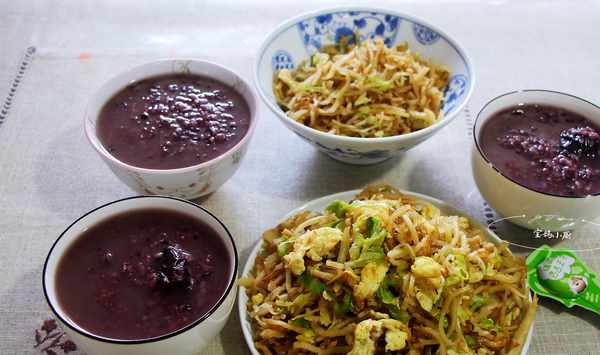 紅棗黑米粥是昨晚用電鍋預約的,早起直接就喝,比較省事,4口人量,食材是3把黑米,2把大米,紅棗6個,洗淨後一起放入電鍋,加水,用電鍋的熬粥功能預約,留出來黑米的2小時以上浸泡時間。