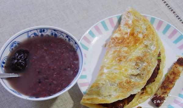 上班一人食:紅棗黑米粥+肉排雞蛋手抓餅。手抓餅比較受年輕人喜愛,外酥內軟還多層,現在都流行買現成的半成品,寶媽也不例外,買兩袋備著,萬一哪一天起晚了家人也有的吃。