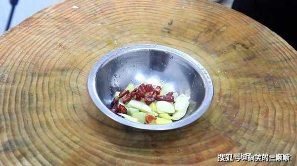 2.大葱划开切成葱花,放在盆里,生姜切成姜片,大蒜切成薄片,与葱,姜一起放在盆里,再抓入干辣椒2克,家有老人和孩子,辣椒可以不放。