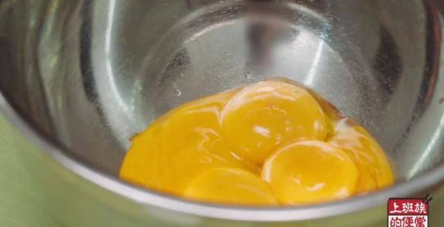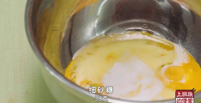 在蛋黄里加入70g牛奶,65g玉米油,30g细砂糖,用打蛋器打散