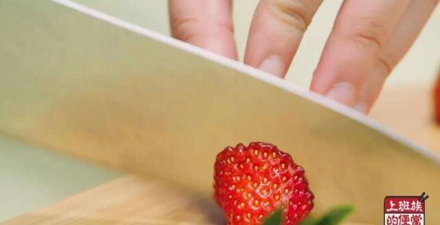 接着来做装饰的草莓小人,草莓洗净后连着叶子把底部切平