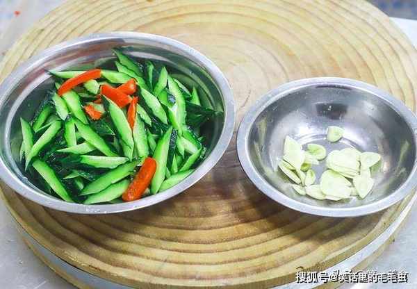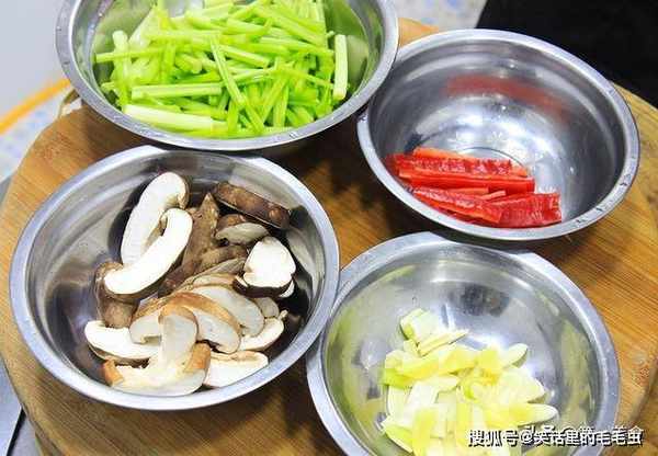 切点姜丝、葱丝、小米椒丝、蒜丝放在一起,用清水泡上,去一下辛辣味,同时防止水分流失、萎缩。