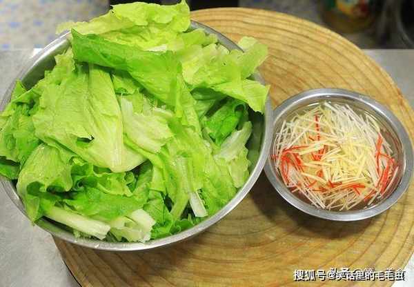 准备几颗新鲜的生菜,把叶片掰下来放在清水中,清净上面的泥沙和杂质。
