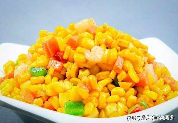 锅内烧水,放入一点食盐、鸡粉入低味,把玉米粒倒入锅中,水烧开以后把浮起来的玉米皮打干净,以免影响口感,大约煮2分钟,玉米断生以后倒出来,控干水分备用。
