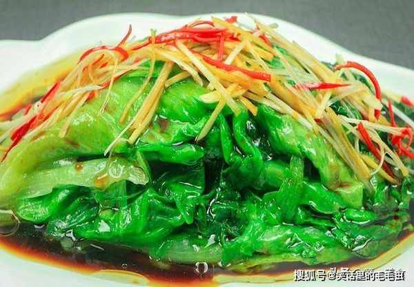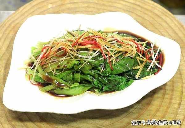 锅内烧油,油烧七成热时,把热油浇在生菜上面激出葱姜丝的香味,一道清香脆口的白灼生菜就做好了。