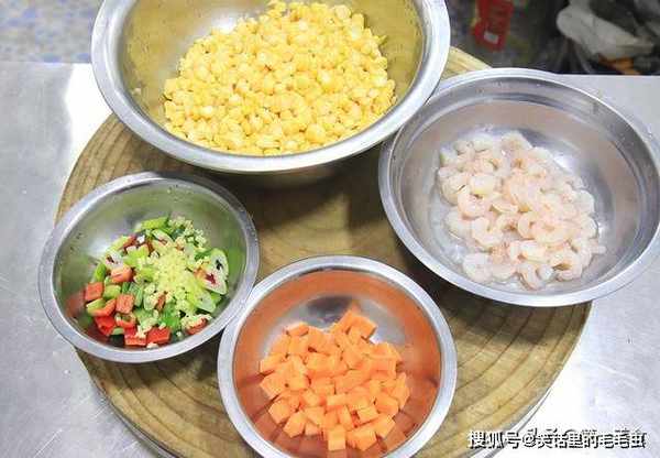 锅内烧油,把青红椒等小料倒入锅中,翻炒出香味,放入胡萝卜丁翻炒30秒钟,胡萝卜断生以后,把虾仁和玉米粒倒入锅中,颠锅翻炒均匀1分钟,玉米炒香以后,从锅边淋入少许清水,加入食盐2克,鸡精2克,胡椒粉1克,转大火,把调料翻炒均匀,食材入味以后即可出锅,一道清香可口的虾仁玉米粒就做好了。