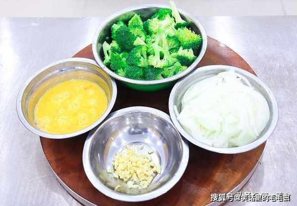 锅内再烧油,油烧热以后倒入洋葱和蒜末,转中火爆炒1分钟,炒出洋葱中的水分,把蒜末爆香,倒入西蓝花,加入食盐2克,生抽10克,颠锅翻炒给西兰花和洋葱入味,再倒入鸡蛋翻炒几下即可出锅,一道清淡营养的洋葱炒西蓝花就做好了。