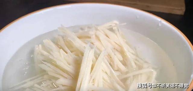 2、给土豆去皮切丝备用,放一勺食盐腌制出水分。